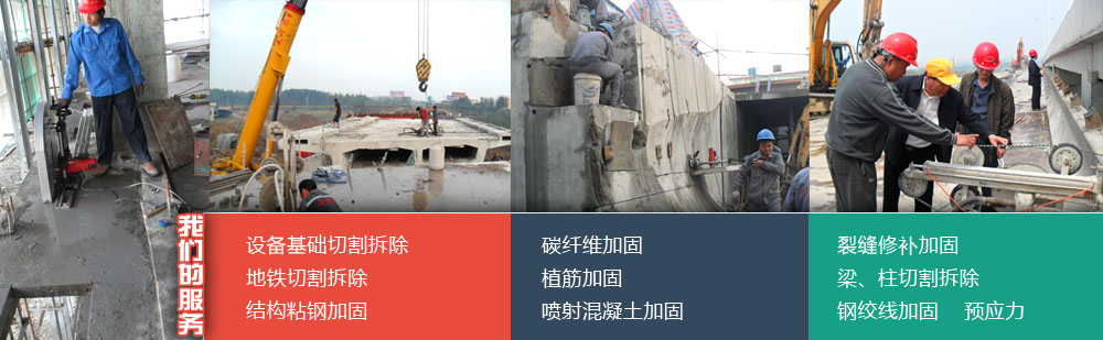 擁有自行研發(fā)生產(chǎn)的專業(yè)性混凝土切割機(jī)設(shè)備:液壓繩鋸機(jī)8臺(tái)、液壓墻鋸機(jī)4臺(tái)、液壓鉆孔機(jī)10臺(tái),電動(dòng)鉆孔機(jī)20臺(tái)